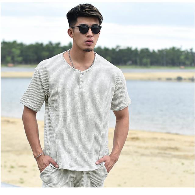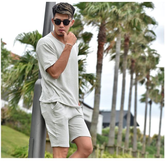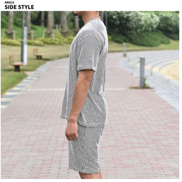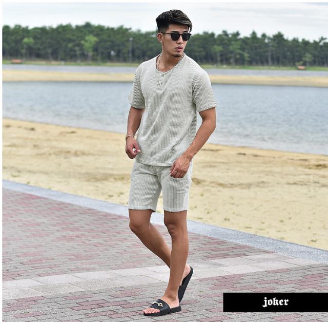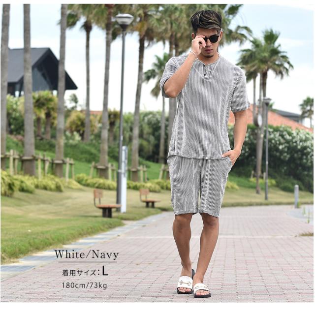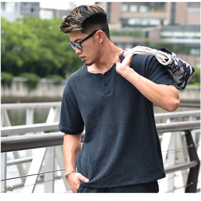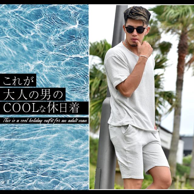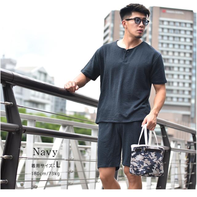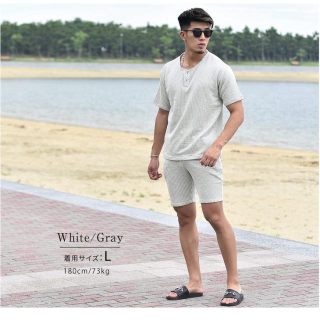 『シアサッカーサマーTシャツセットアップ』大人の余裕と爽やかさを生み出すTシャツとハーフパンツのセットアップが登場。【モテる男は、いつも余裕】モテる男はいつだってどこか余裕を持っている。そして、それは服装にも現れる。Tシャツはゆとりのあるサイズ感を採用することで、リッチな大人のOFFを感じる余裕を演出。また、首元はボタン付きのヘンリーネックで胸元に色気をプラス。ハーフパンツはゆとりを持たせ過ぎないサイズ感で、スッキリとしたビジュアルに。生地は、凹凸感のあるサッカー織の生地を採用することで、肌との接地面を減らし快適で爽快な、着心地からも余裕を。見た目、そして中身から大人の余裕を。
