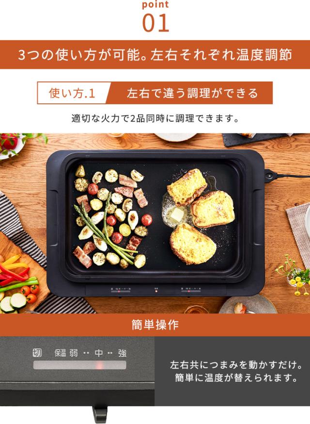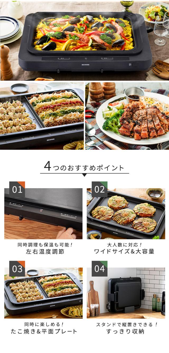 ホットプレート 左右温調ホットプレート2枚 WHPK-022-B ブラック ホットプレート 左右温度調整 2枚 プレート 調理 調理家電 キッチン家電 焼肉 料理 ホームパーティー パーティー 丸洗い たこ焼き たこ焼き器 アイリスオーヤマ 送料無料