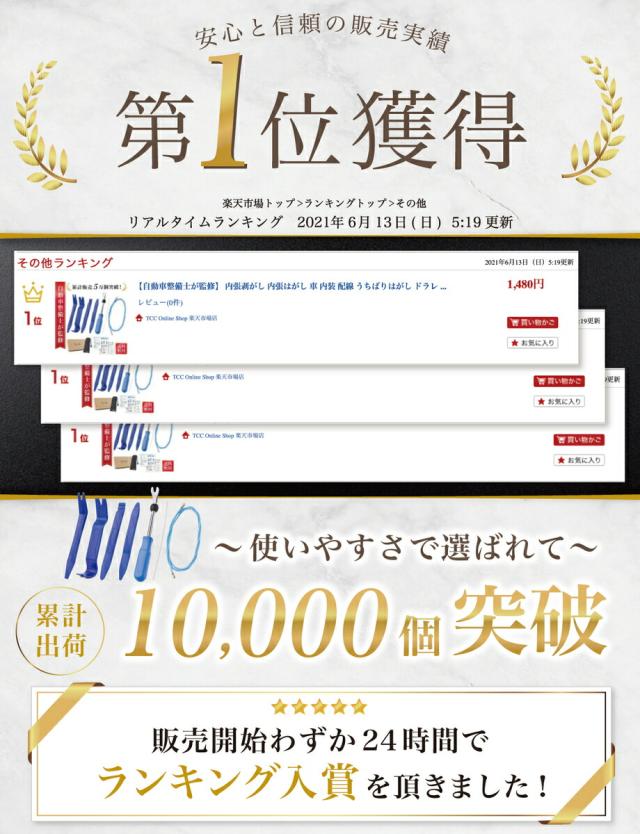 様々なメーカーから” 内張り剥がし”や” パネル剥がし”として リムーバーと配線ガイドをセットにした商品が販売されていますが、 Rozallyの内装剥がしは”耐久性能”と”使いやすさ”が一味違います。 車用内装パーツをメインに取り扱っている 10社以上の工場からサンプルを取り寄せ、 強度と形状を一緒に試行錯誤して頂けた 1社に絞って発注を行なっています。 内装はがし としてオールインワンのセットになっている製品になります。 |