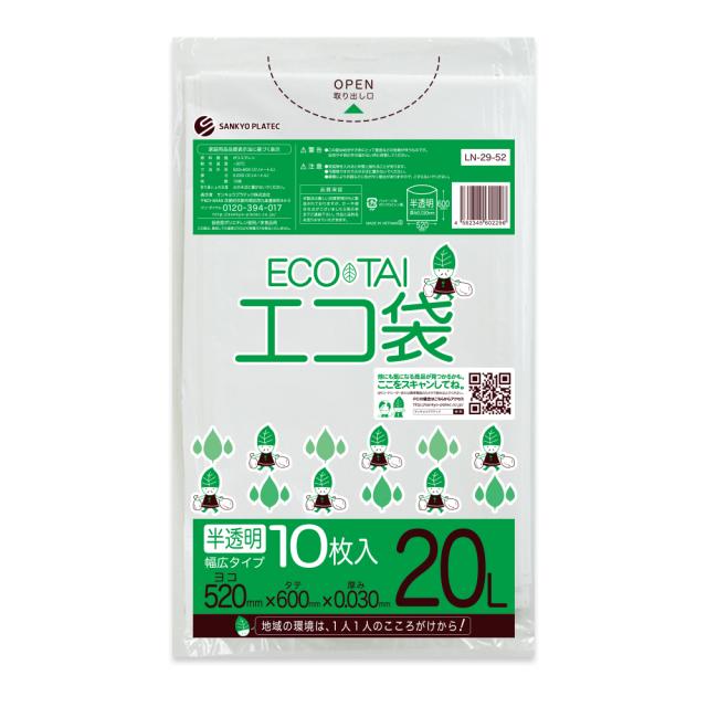 【バラ販売】LN-29-52bara ポリ袋 20リットル 幅広タイプ 0.030mm厚 半透明 10枚 / ゴミ袋 ごみ袋