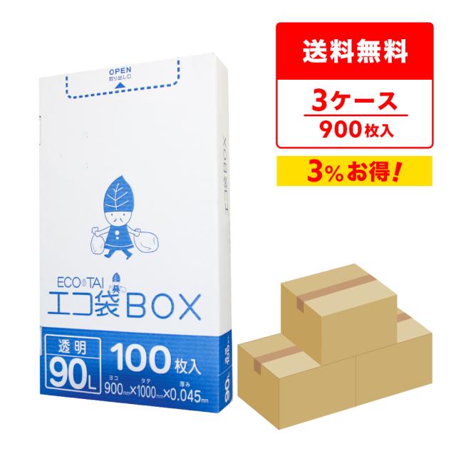 ポリ袋 ゴミ袋 箱タイプ 90リットル 透明 90x100cm 0.045mm厚 100枚x3小箱x3箱 HK-980-3 ごみ袋 90l BOXタイプ 箱型 収納 クリア サンキョウプラテック 送料無料