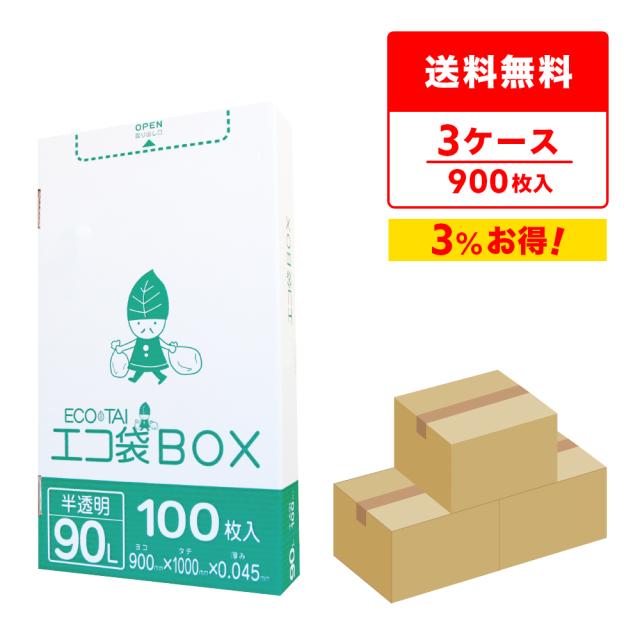 ポリ袋 ゴミ袋 箱タイプ 90リットル 半透明 90x100cm 0.045mm厚 100枚x3小箱x3箱 HK-990-3 ごみ袋 90l BOXタイプ 箱型 収納 ホワイト サンキョウプラテック 送料無料
