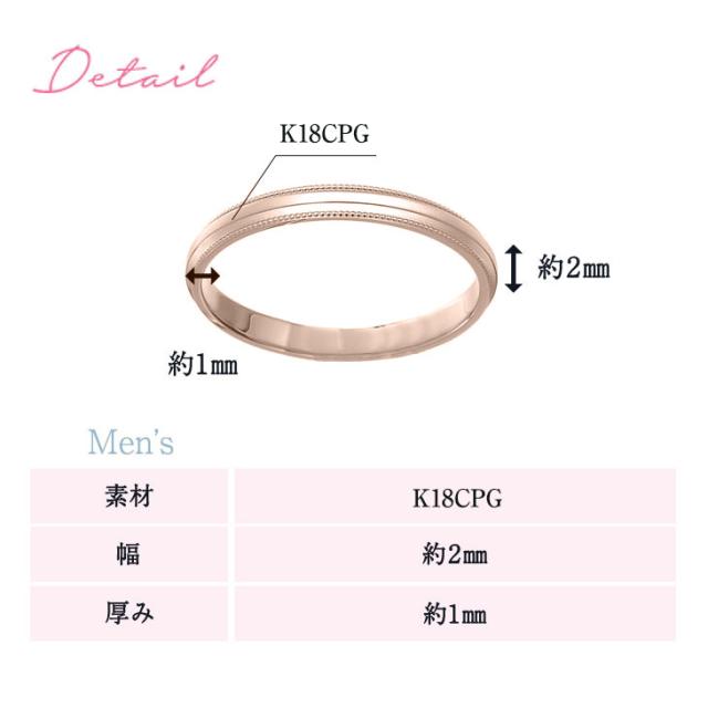 リング幅:約2mm 厚み:約1mm(男女共通)