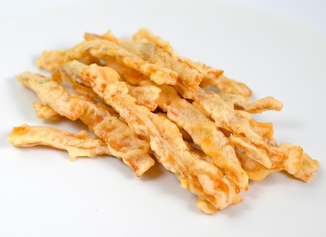原材料名:天ぷら粉(小麦粉、でん粉)(国内製造)、いか、植物油、砂糖、食塩、でん粉、香辛料、酵母エキス、調味エキス(豚肉・ゼラチン・牛肉・大豆・ごまを含む)/ソルビトール、グリセリン、調味料(アミノ酸等)、甘味料(ステビア)、香辛料抽出物、乳化剤