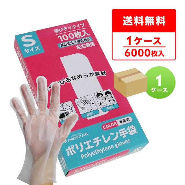 CPE ポリエチレン手袋 Sサイズ 半透明 約22x27.4cm 100枚x60小箱 HGCNS-100 外エンボス加工 食品衛生法適合商品 左右兼用 使い捨て手袋 衛生手袋 業務用 飲食店 食品調理 介護 清掃 園芸 サンキョウプラテック 送料無料