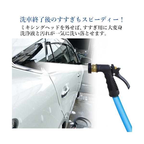 カーシャンプーを入れ、ご家庭のホースに直接取り付けるだけの簡単接続。