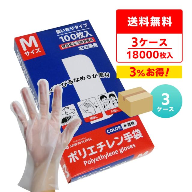 CPE ポリエチレン手袋 Mサイズ 半透明 約24x28.3cm 100枚x60小箱x3箱 HGCNM-100-3 外エンボス加工 食品衛生法適合商品 左右兼用 使い捨て手袋 衛生手袋 業務用 飲食店 食品調理 介護 清掃 園芸 サンキョウプラテック 送料無料
