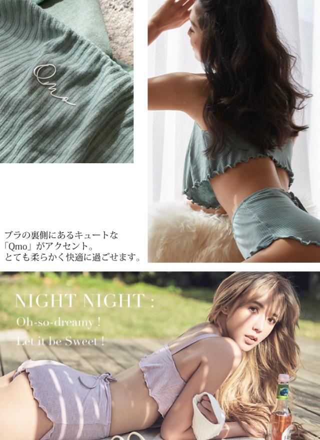 商品名(商品番号):カップ付き おやすみブラ リブ ブラジャー&パンツセット (qmo-022)