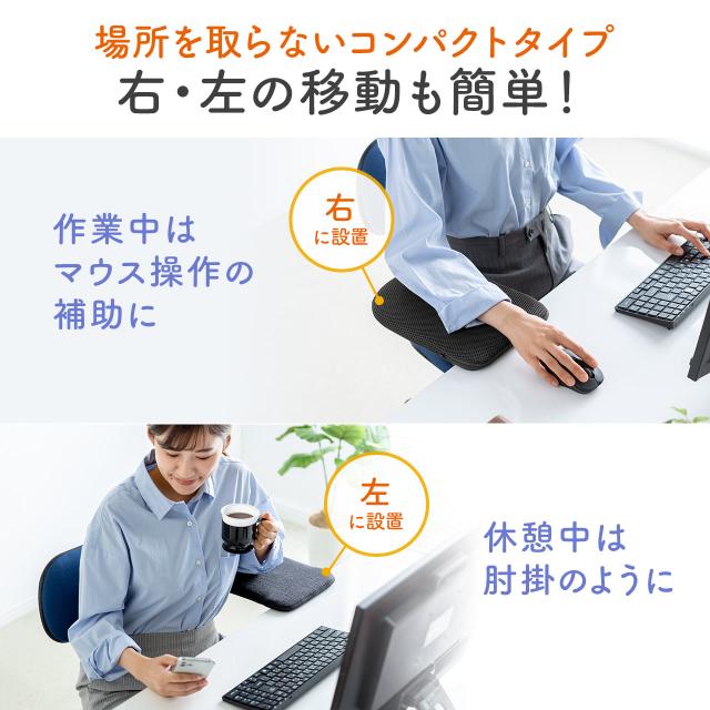 ●デスク天板に引っ掛けるだけで、簡単に肘置き台を作ることができる後付のリストレストです。●肘を置くことでマウスやキーボード操作時の腕の疲れを軽減します。