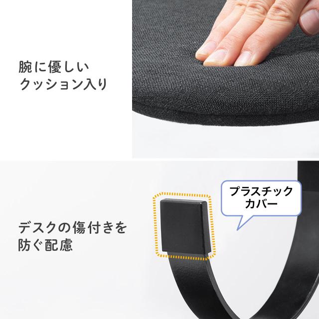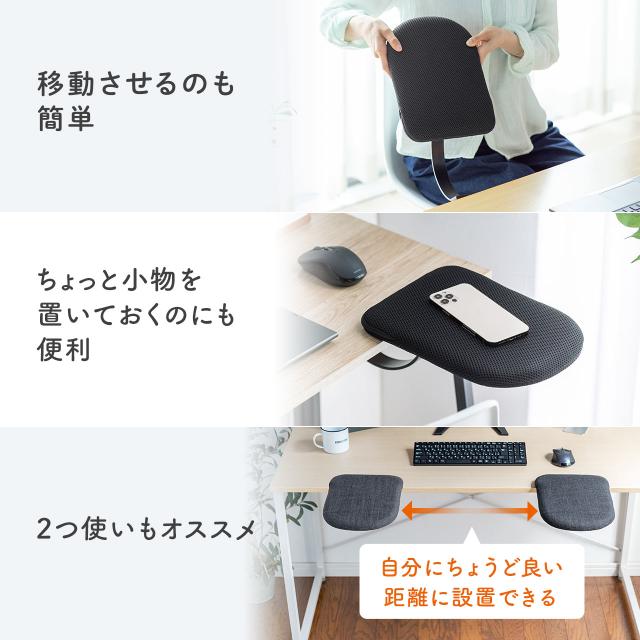 リストレスト 幅21cm メッシュ生地 肘置き台 デスクにワンタッチ取り付け ブラック[100-TOK007MBK]