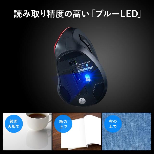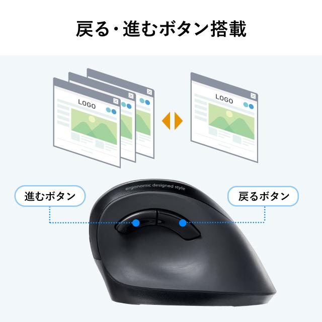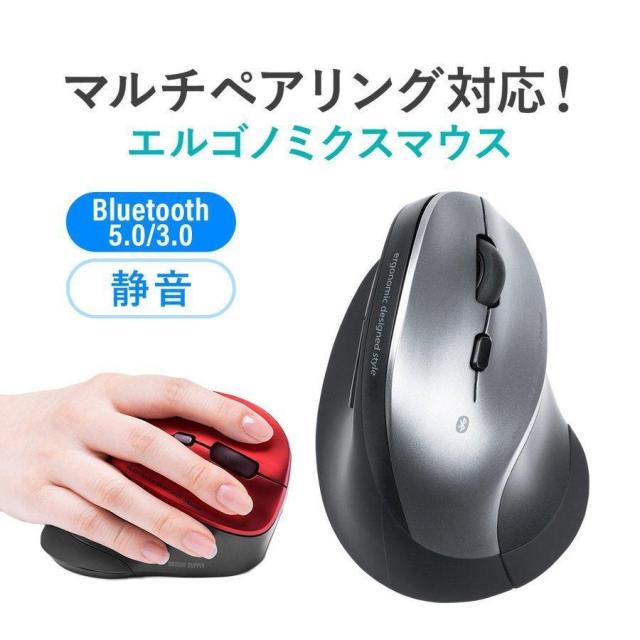 エルゴノミクスマウス Bluetooth マルチペアリング対応 静音ボタン カウント切り替え 乾電池式 [400-MABT102]