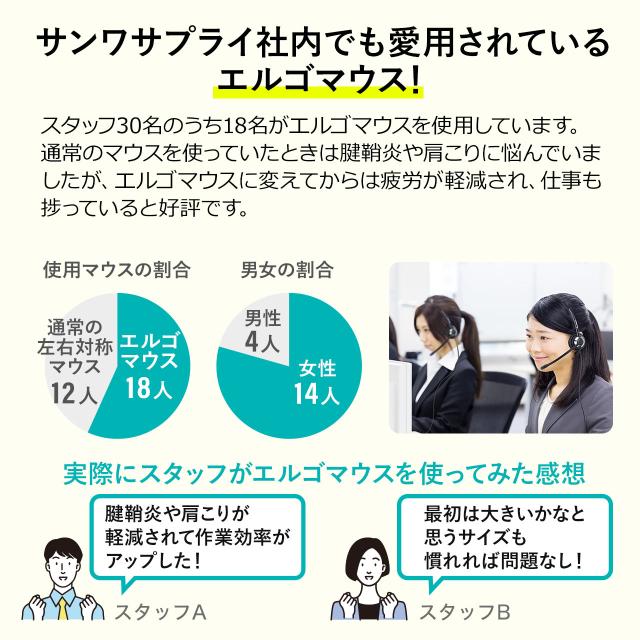 ●Bluetooth接続のエルゴノミクス形状のBluetoothマウスです。●エルゴノミクス(人間工学)に基づいた形状のため長時間使用しても疲れにくいです。