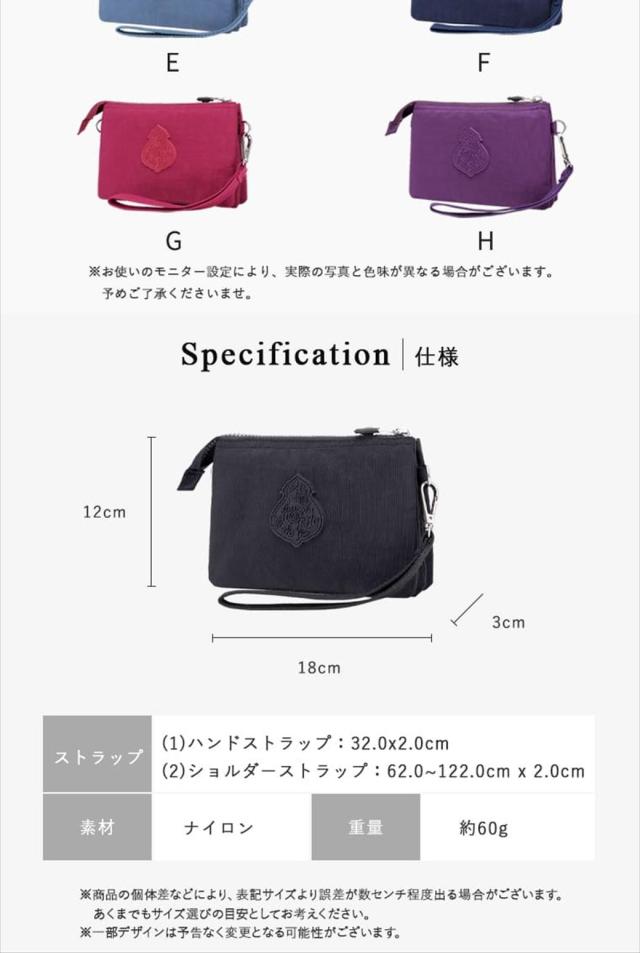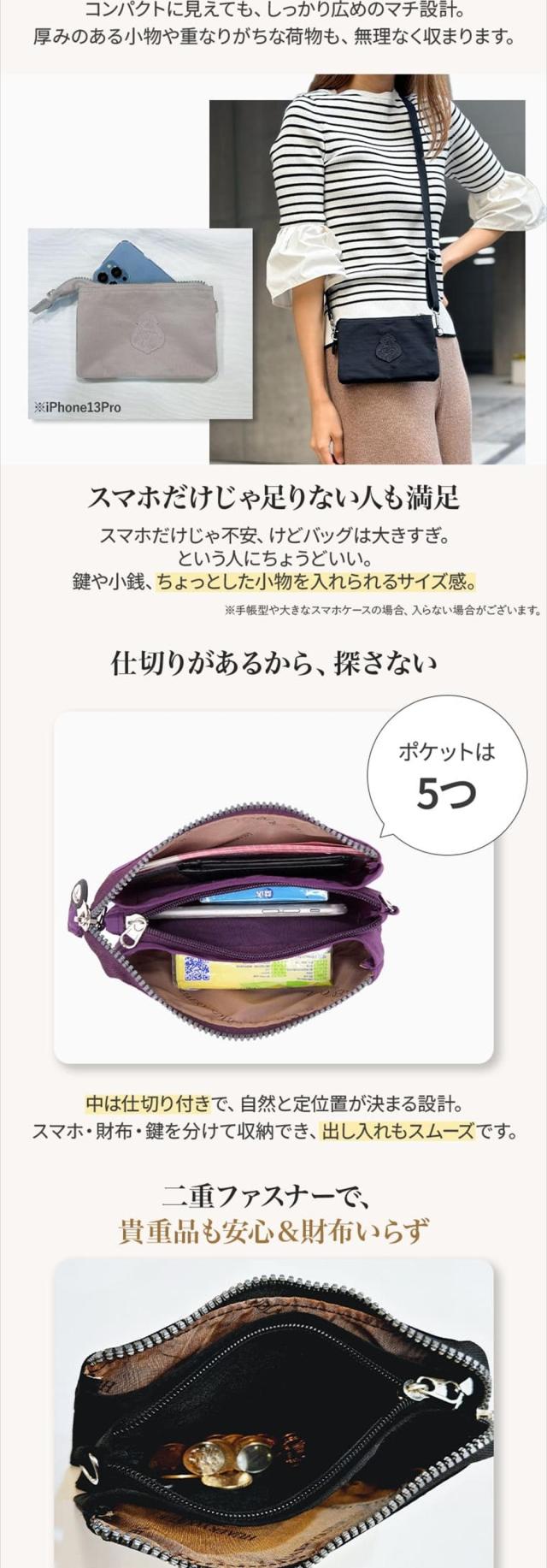 - 発送も早い。 ピンクとネイビーを購入。小さいくせに意外と入る。 3室に分かれている上、仕切りもあって使いやすい。