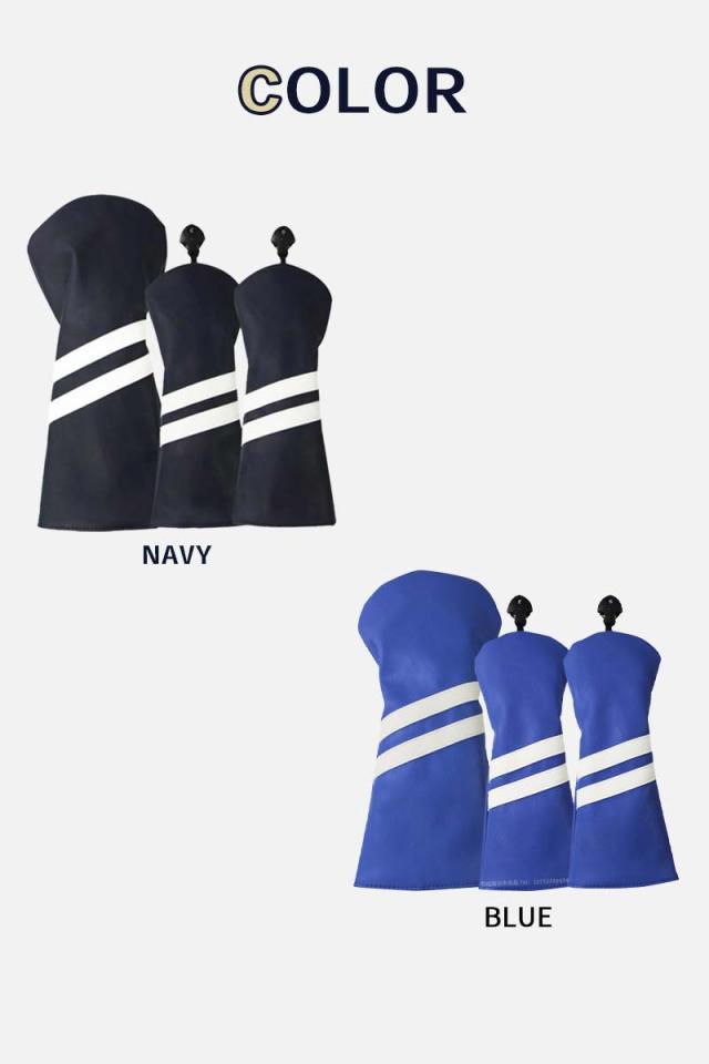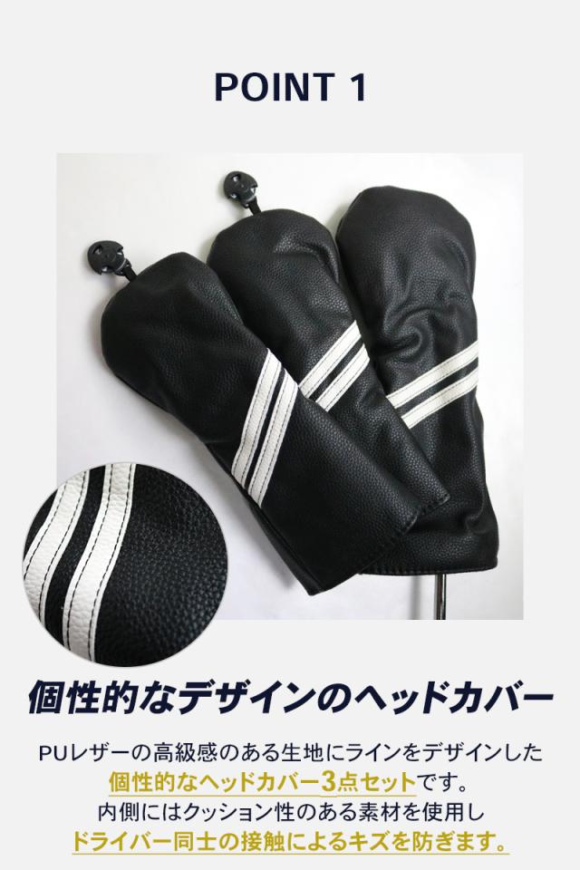 PUレザーの高級感のある生地にラインをデザインした、個性的なヘッドカバー3点セットです。
