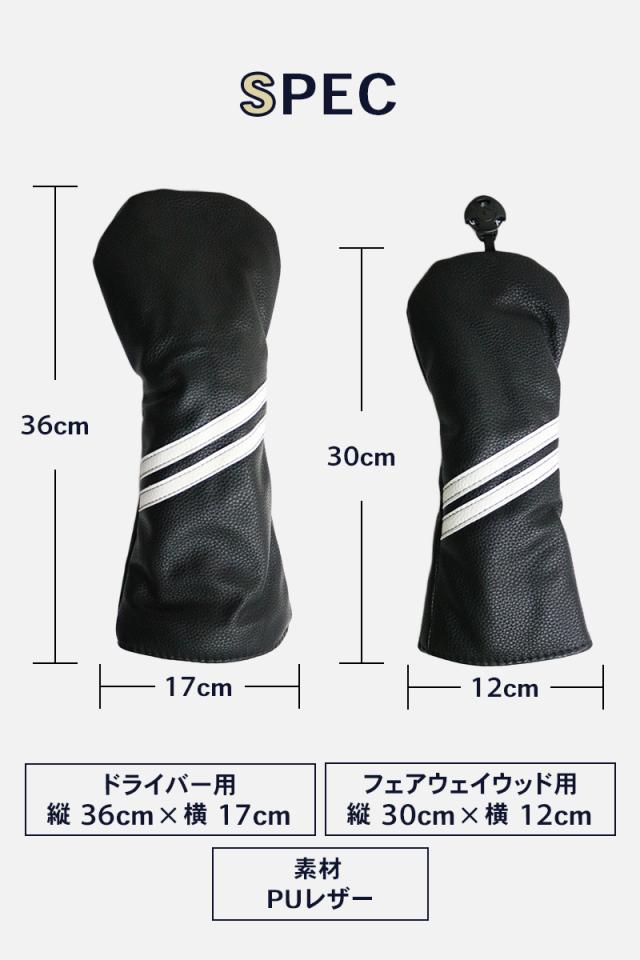 【サイズ】ドライバー用:約 縦36cm×横17cm、フェアウェイウッド用:約 縦30cm×横12cm