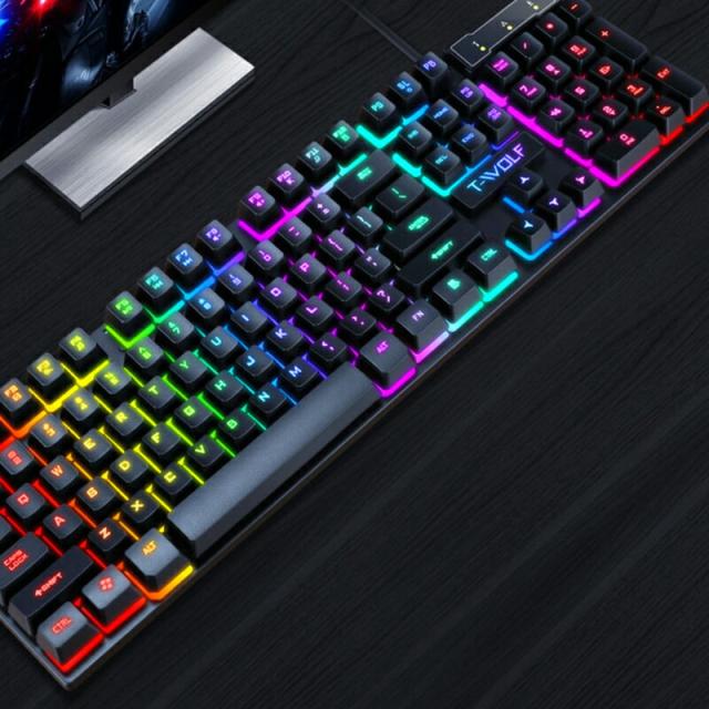 | ゲーミングキーボード ゲーミングマウス 2点セット [T-WOLF TF200] メンブレン テンキー付き 英語配列 防水仕様 光学式 USB接続 バックライト ブラック ホワイト |