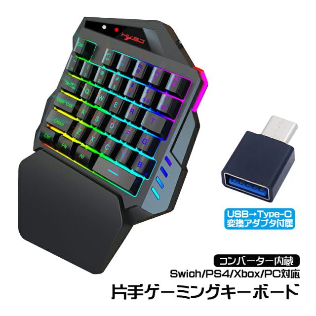 Nintendo Switch PS4 Xbox 対応 コンバーター内蔵 片手ゲーミングキーボード Type-C変換アダプタ付属 左手 任天堂スイッチ ライト [V500] 有線 USB 接続 日本語取扱説明書付き