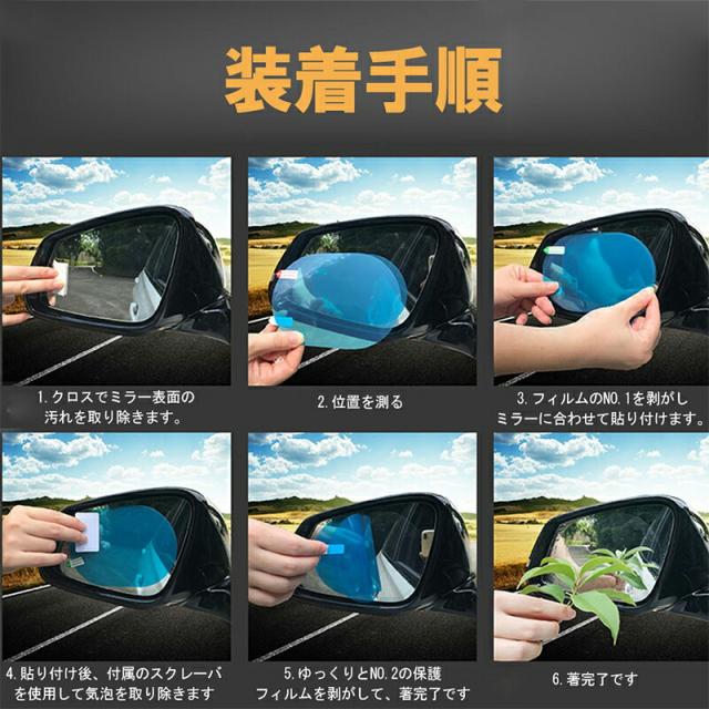 親水ドアミラーフィルム 2枚入り ナノコーティング 撥水 自動車 車 高光透過率 フェンダーミラー サイドミラー