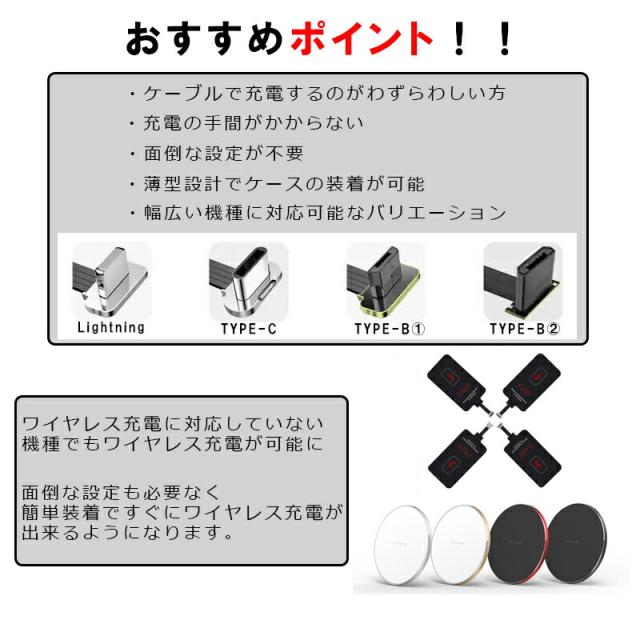 | ワイヤレス充電レシーバー 置くだけで Qi チー 規格 USB スマホ対応ワイヤレスレシーバーシート 非接触充電 Qiレシーバー ワイヤレス充電 Micro-USB端子対応 |
