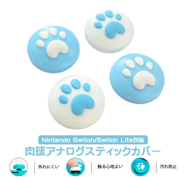 | アナログスティックカバーSwitch 有機ELモデル Switch Lite対応 肉球 ハート 猫 ブルー ホワイト |