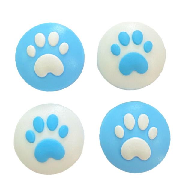 アナログスティックカバー Nintedo Switch 有機ELモデル スイッチ対応 Switch Lite対応 肉球 ハート 猫 ブルー ホワイト 4個入り 【送料無料】