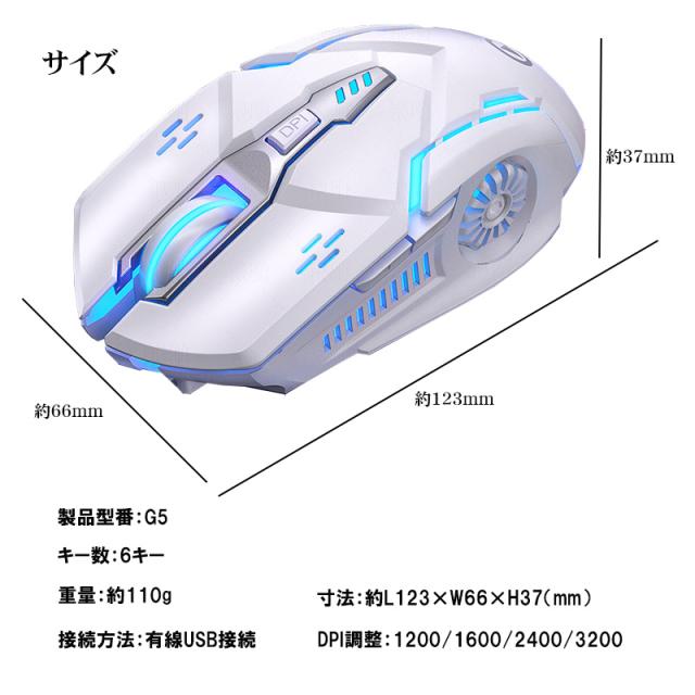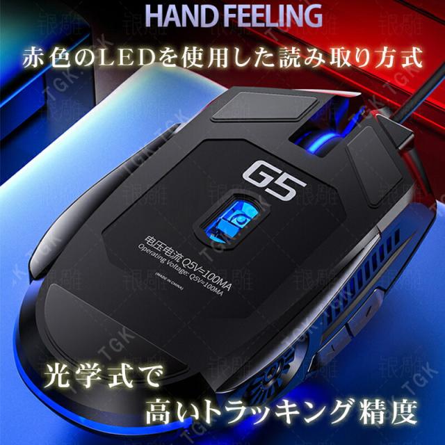 ゲーミングマウス [G5] 有線マウス USB接続 DPI4段階調整 最大3200DPI LEDバックライト 6ボタン搭載 光学式