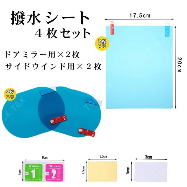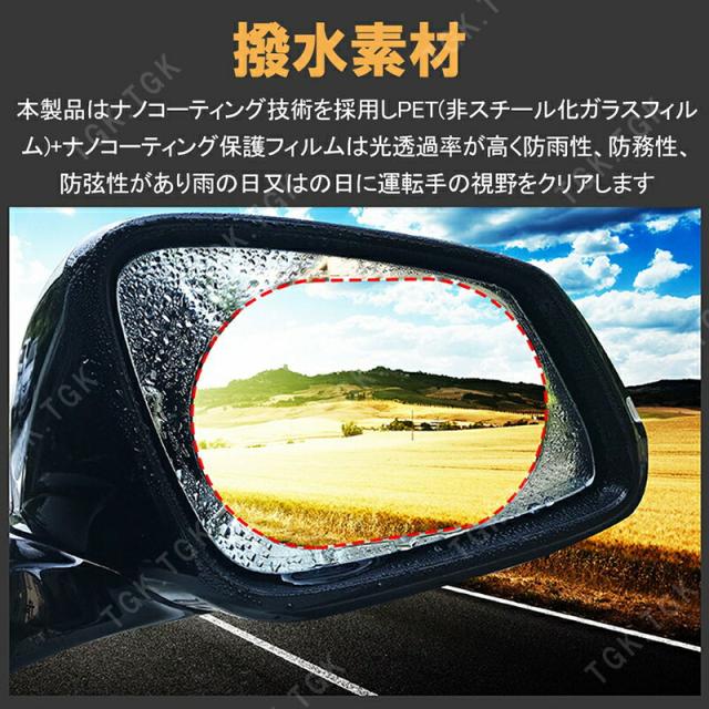 | 撥水ドアミラーフィルム 4枚入り ナノコーティング 撥水 自動車 車 高光透過率 ドアウィンドウ 窓ガラス フェンダーミラー サイドミラー フリーカット |