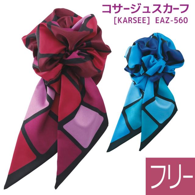 KARSEE カーシー オフィスウェア用 コサージュミニスカーフ EAZ-560 ブルー ピンク フリーサイズ