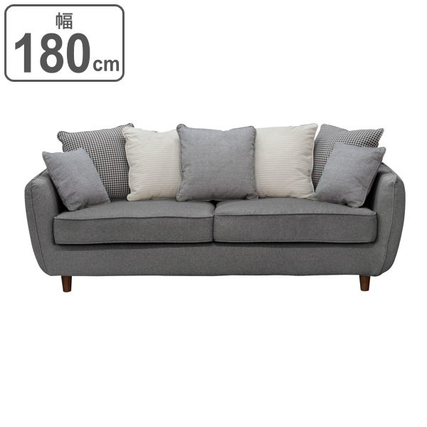 《 LH7105 リビングソファー フロアソファー ローソファー クッション 6個 肘付き 腰掛け 3Pソファ 3人 三人 約 幅 180 奥行き 85 高さ 75 座面高 40 45 座面高40 cm センチ グレー 新生活 家具 インテリア オシャレ お洒落 木製脚 》