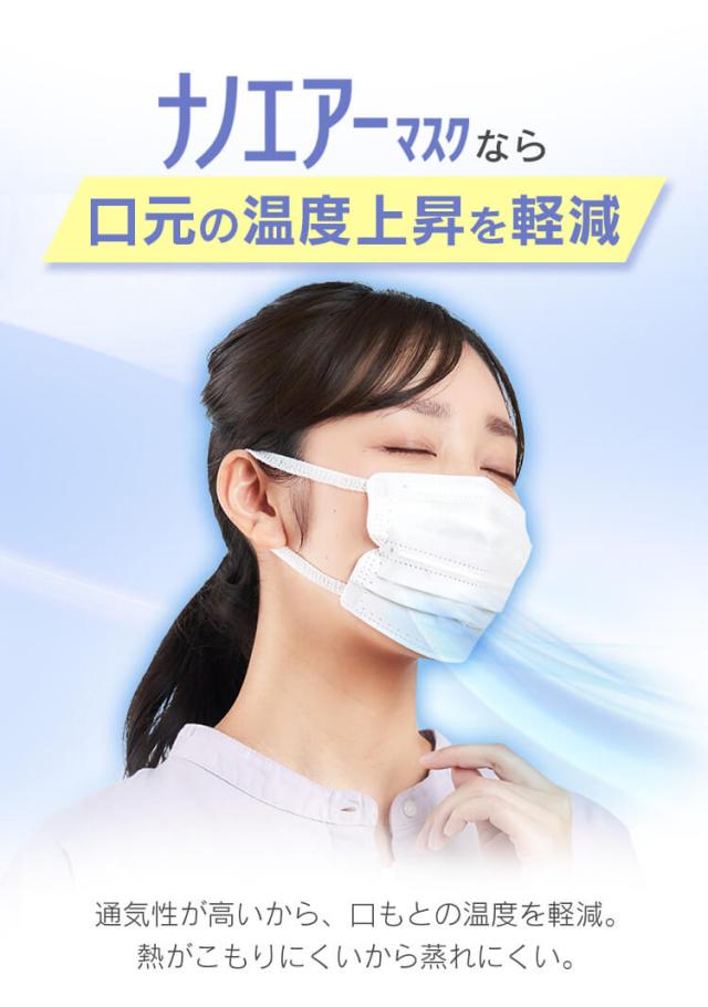 当社独自のナノエアーフィルターを採用。息がしやすく蒸れ・メガネ曇りを緩和するナノエアーマスク 花粉対策用。