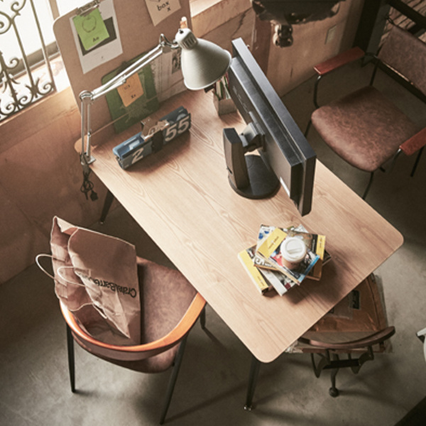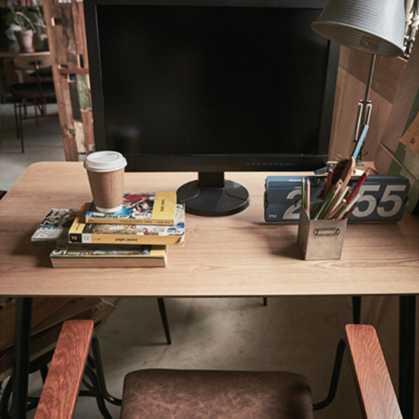 ●シンプルなスチール製の脚と温かみのある木目調の天板の組み合わせです。
