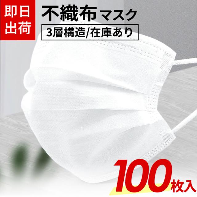 【300円クーポン付き】マスク 100枚入り不織布マスク 3層マスク 白色 ホワイト 男性 女性 大人用 成人用 現品有り 即日発送