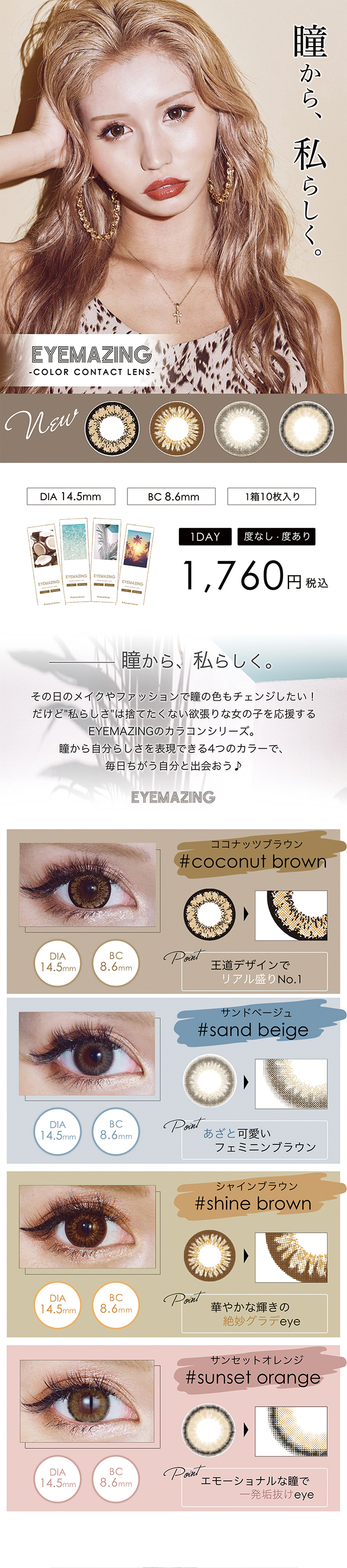 EYEMAZING アイメイジング(1箱10枚入り)( 送料無料 カラコン カラーコンタクト 度あり 度なし ワンデー 1日使い捨て 1day ワンデーカラコン たかなな )