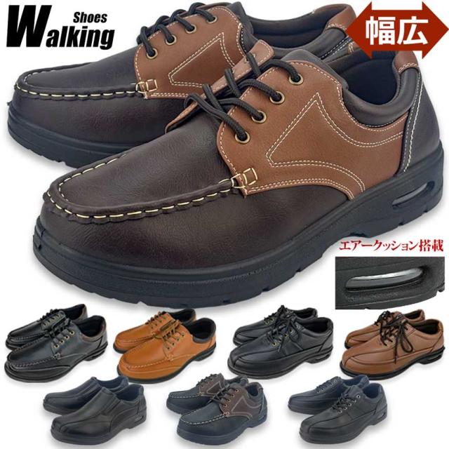 ウォーキングシューズ ビジネスシューズ スニーカー スリッポン メンズ 幅広 3e 4e クッションソール 軽量 厚底 エアーソール