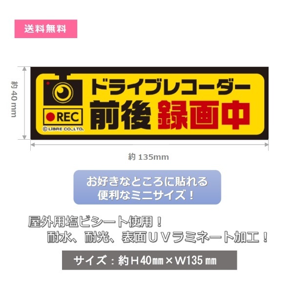 ドライブレコーダー前後録画中/ドラレコ/録画中/シール ミニステッカー H40×W135mm MS-004 区分Y