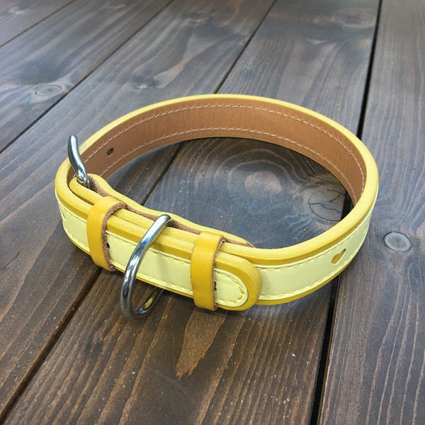 犬用 首輪 大型犬用 革製 サイズ24 イエロー AKU-019 《訳あり・少々難あり》 区分60Y