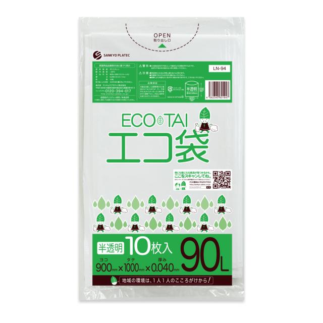 【バラ販売】LN-94bara ポリ袋 90リットル 0.040mm厚 半透明 10枚 / ゴミ袋 ごみ袋