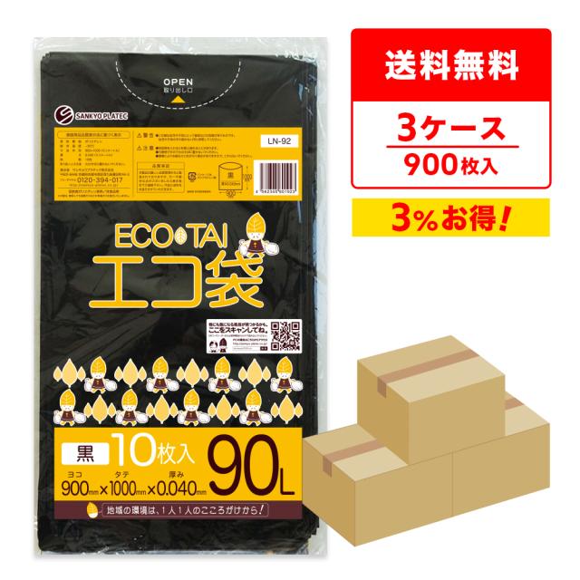 【まとめて3ケース】LN-92-3 ポリ袋 90リットル 0.040mm厚 黒 10枚x30冊x3箱 / ゴミ袋 ごみ袋 送料無料