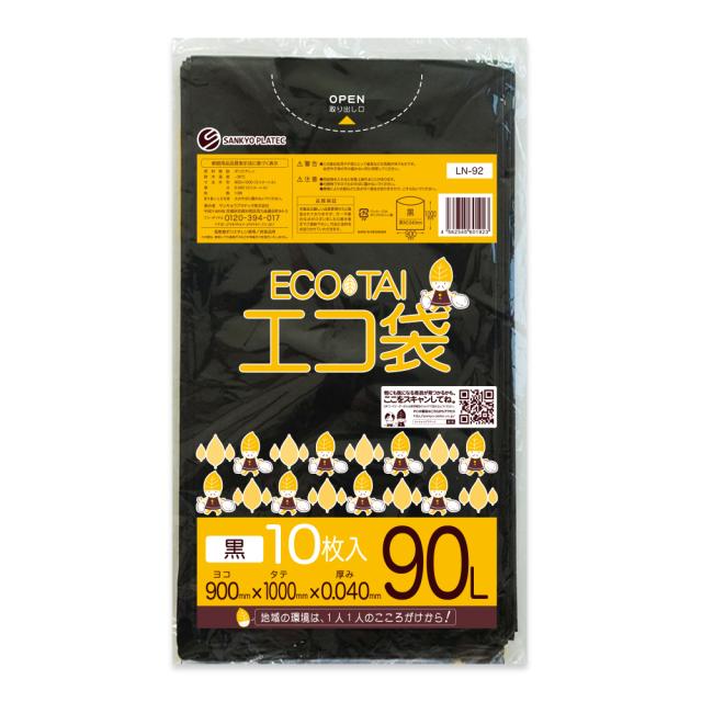 【バラ販売】LN-92bara ポリ袋 90リットル 0.040mm厚 黒 10枚 / ゴミ袋 ごみ袋