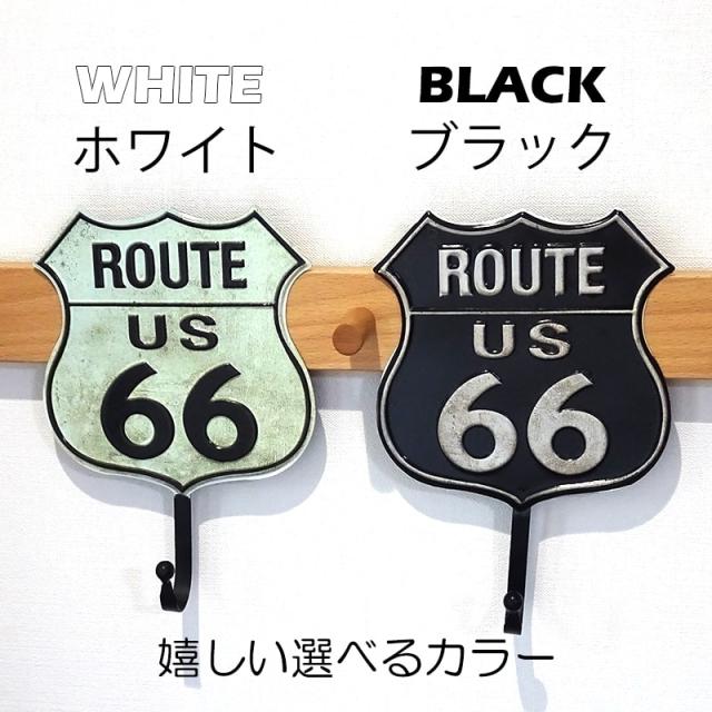看板 ルート66 アイアンフック ブリキ ROUTE66 ブラック ホワイト アンティーク プレート 可愛い 玄関飾り 置物 お店