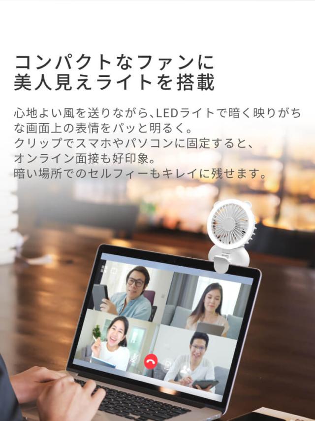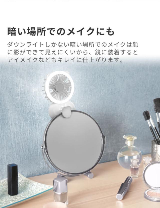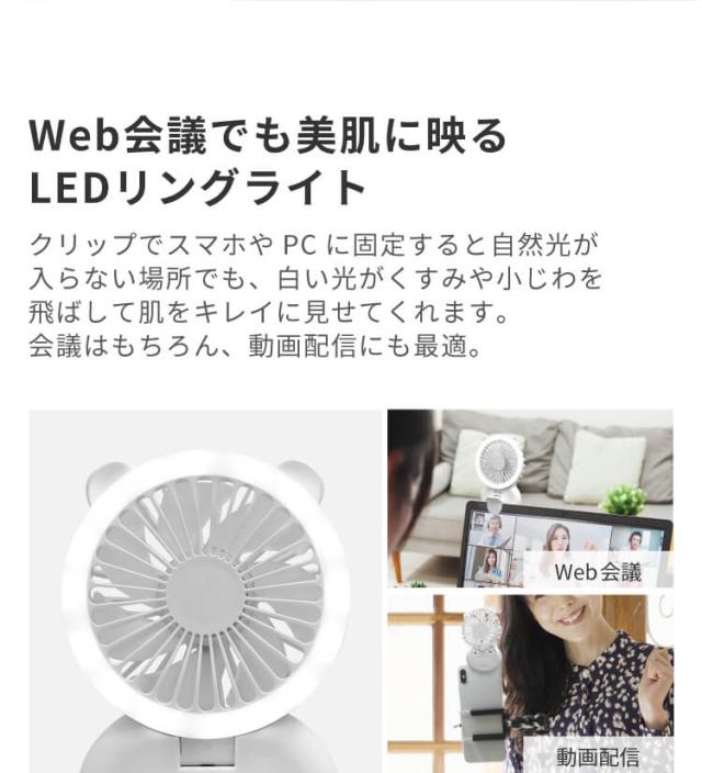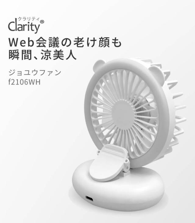 Clarity 小型 LEDリングライト付き 扇風機 LEDリングライト 照明 メイク 持ち運び 小型 ミニ 首かけ クリップ 卓上 軽量 静音 在宅ワーク コンパクト ジョユウファン f2106WH ファン