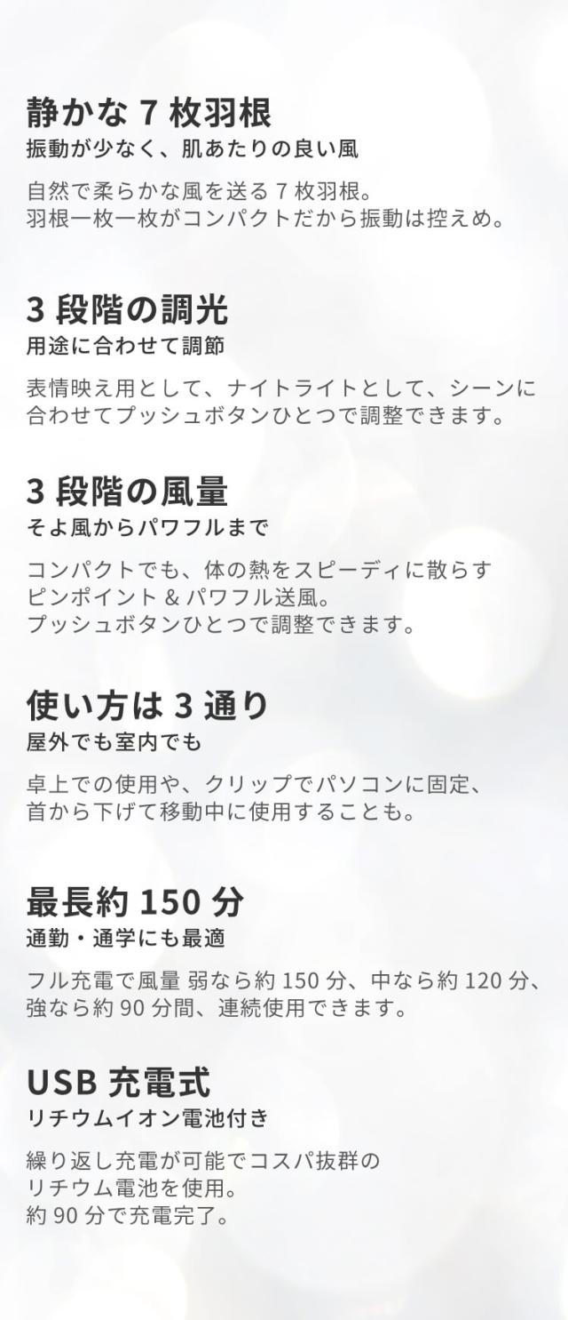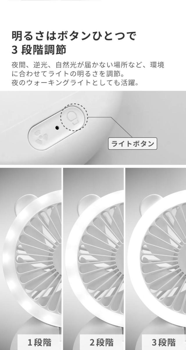 Clarity クラリティ 小型 LEDリングライト付き 扇風機 LEDリングライト 照明 メイク 持ち運び 小型 ミニ 首かけ クリップ 卓上 軽量 静音 在宅ワーク コンパクト ジョユウファン f2106WH ファン