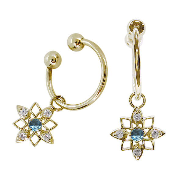 フープピアス 18k ノンホールピアス 揺れる 星 イヤリング ブルートパーズ