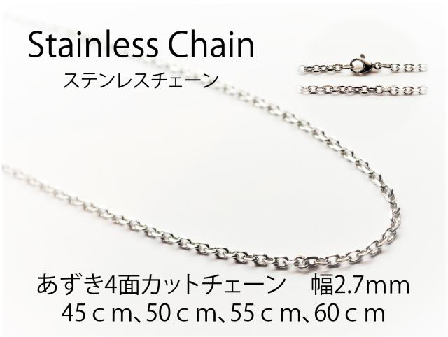 【送料無料】 ステンレスチェーン あずき4面カットチェーン CLS80/4c 幅2.7mm 長さ45cm、50cm、55cm、60cm サージカルステンレス ネックレス メンズ レディース