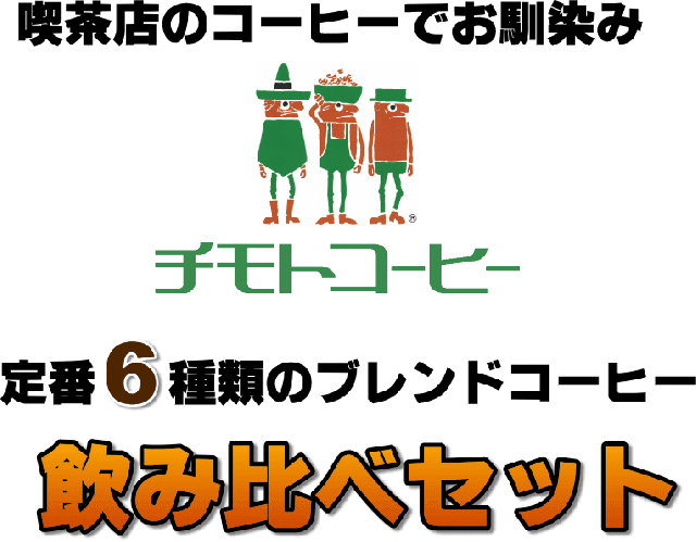 業務用コーヒー専門 チモトコーヒーの定番6種類が20杯分ずつ、全部で120杯分のお試しセット。