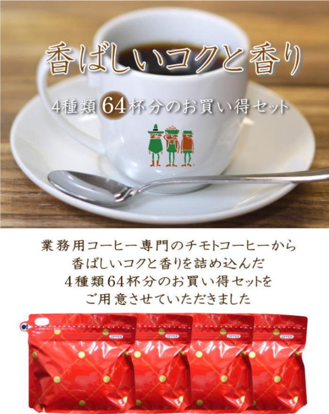 コーヒー コーヒー豆 香ばしいコクと香りのコーヒー4種類640gセット! (160g×4袋) 【64杯分】