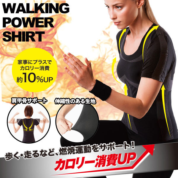 ウォーキングパワーシャツ 機能性 インナー 筋トレ 着圧 ムレにくい ウォーキング ジョギング 燃焼運動