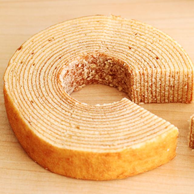 愛媛県新居浜市の洋菓子店 永久堂の「みかん蜂蜜バウムクーヘン」です。生地には愛媛県産の厳選素材「媛っ娘みかんたまご」「みかん蜂蜜」を使用し、職人が一層一層心を込めて焼くことで、驚きの柔らかさと程よい甘さを感じられるお菓子が誕生しました。フレッシュバターと蜂蜜の香りのする自慢のバウムクーヘンです。