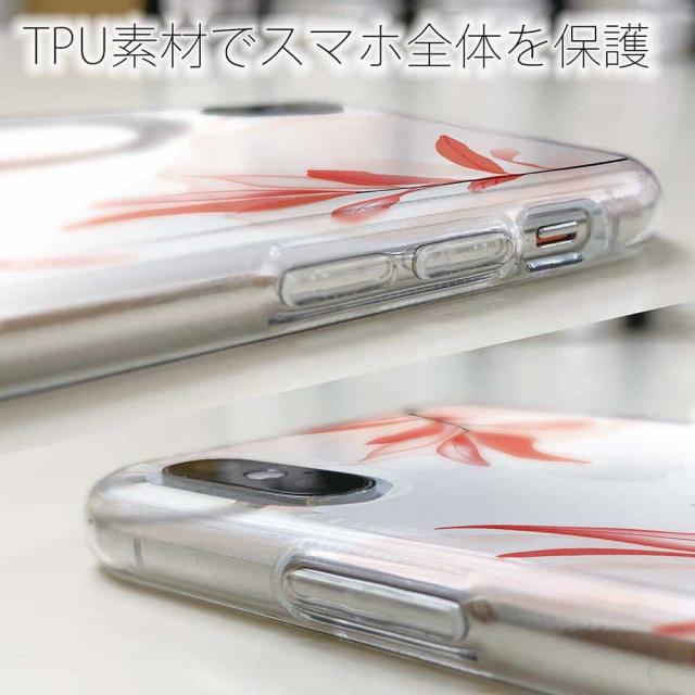 | ケースの素材について | 側面はゴムのように柔らかいTPU素材で、スマホ本体を守ります。万が一の落下でもケースが割れることがなく、耐久性の高いケースとなります。クリア(透明)のTPUケースにプリントしていますので、スマホ本体のカラーを活かしながらデザインケースが楽しめます。 |