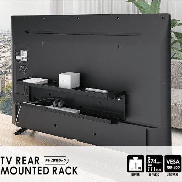 液晶テレビ背面のVESAマウントに取り付けられる背面ラック